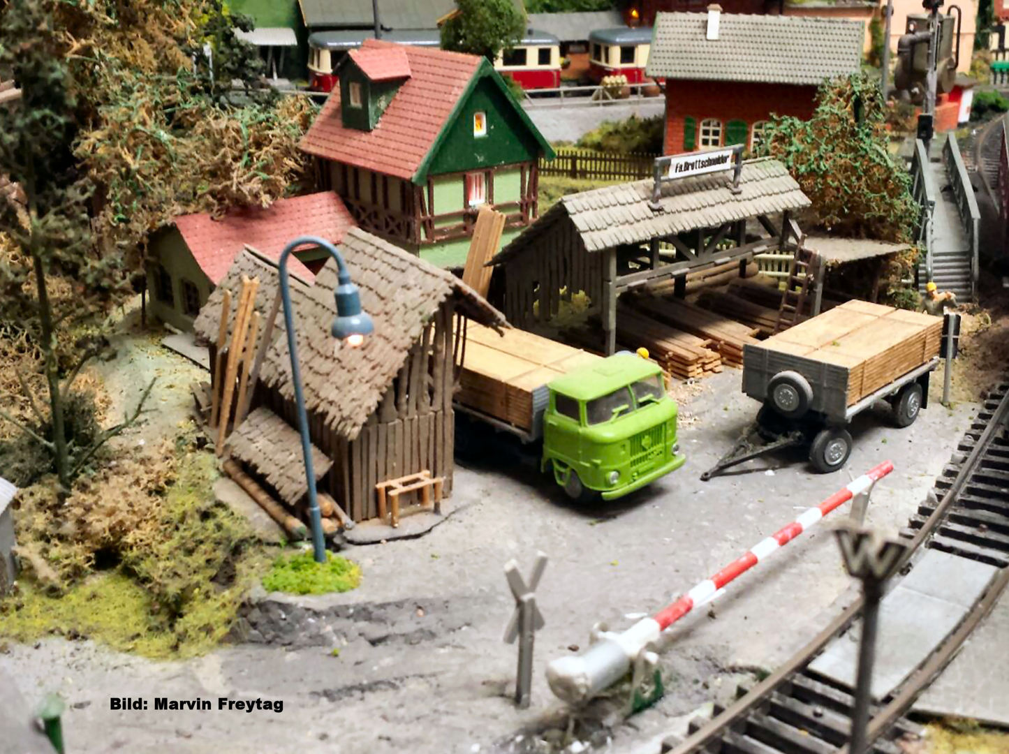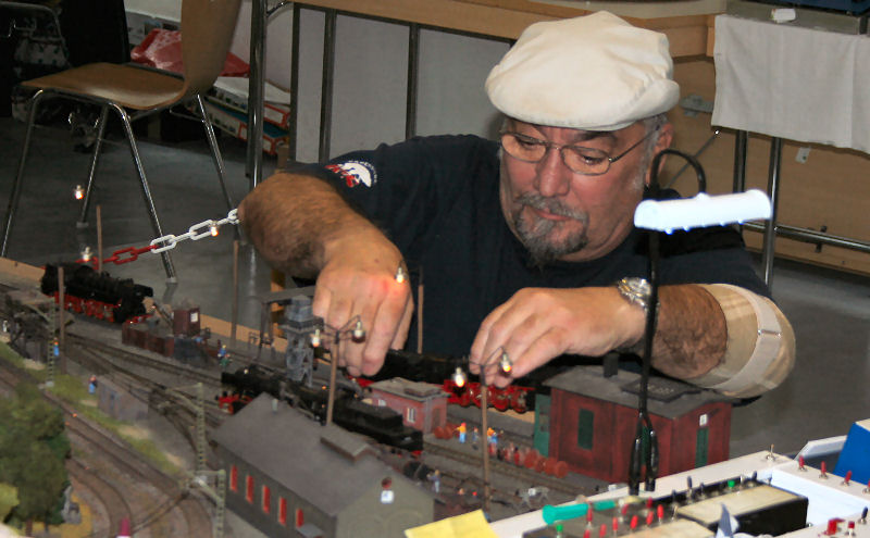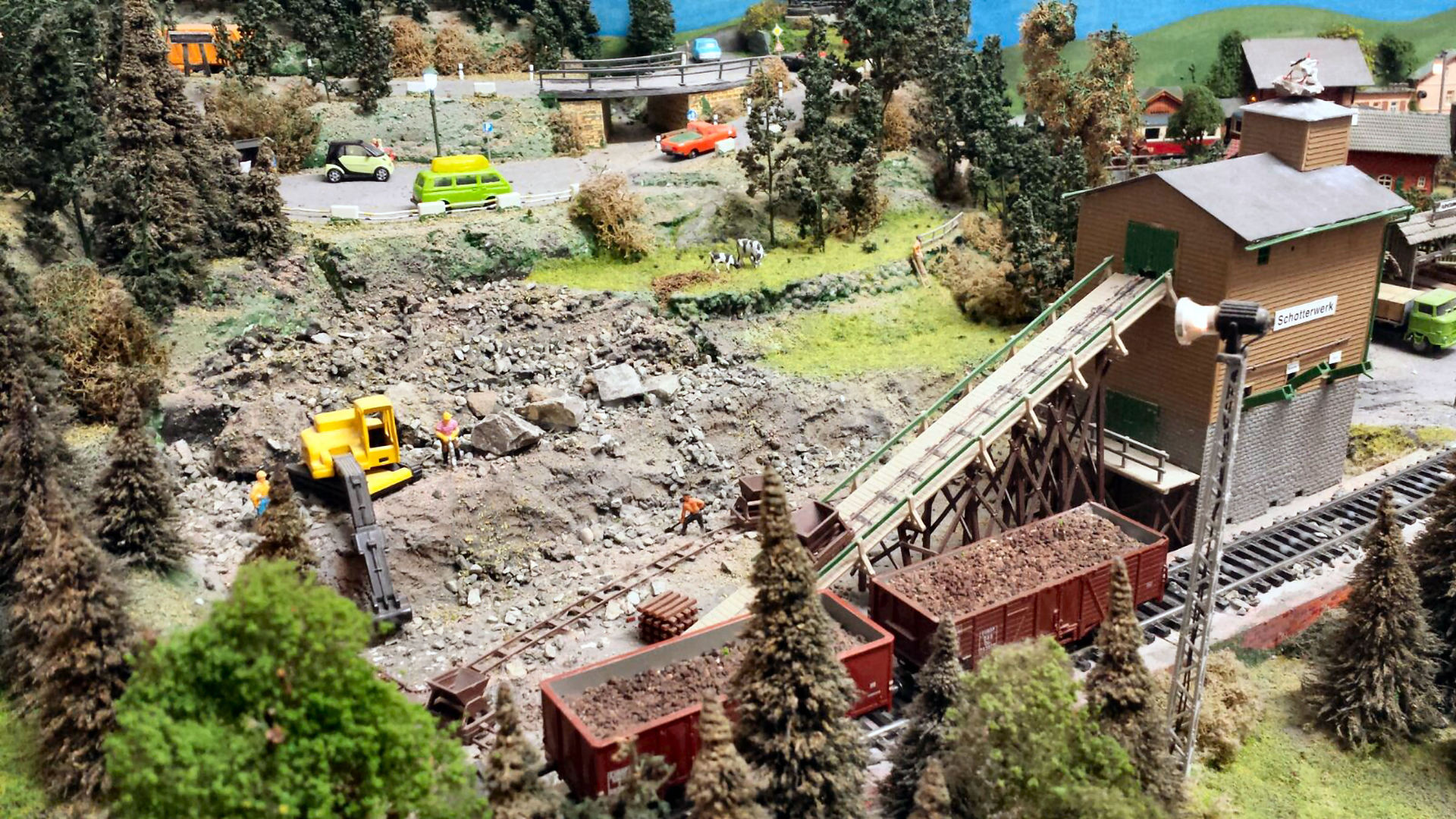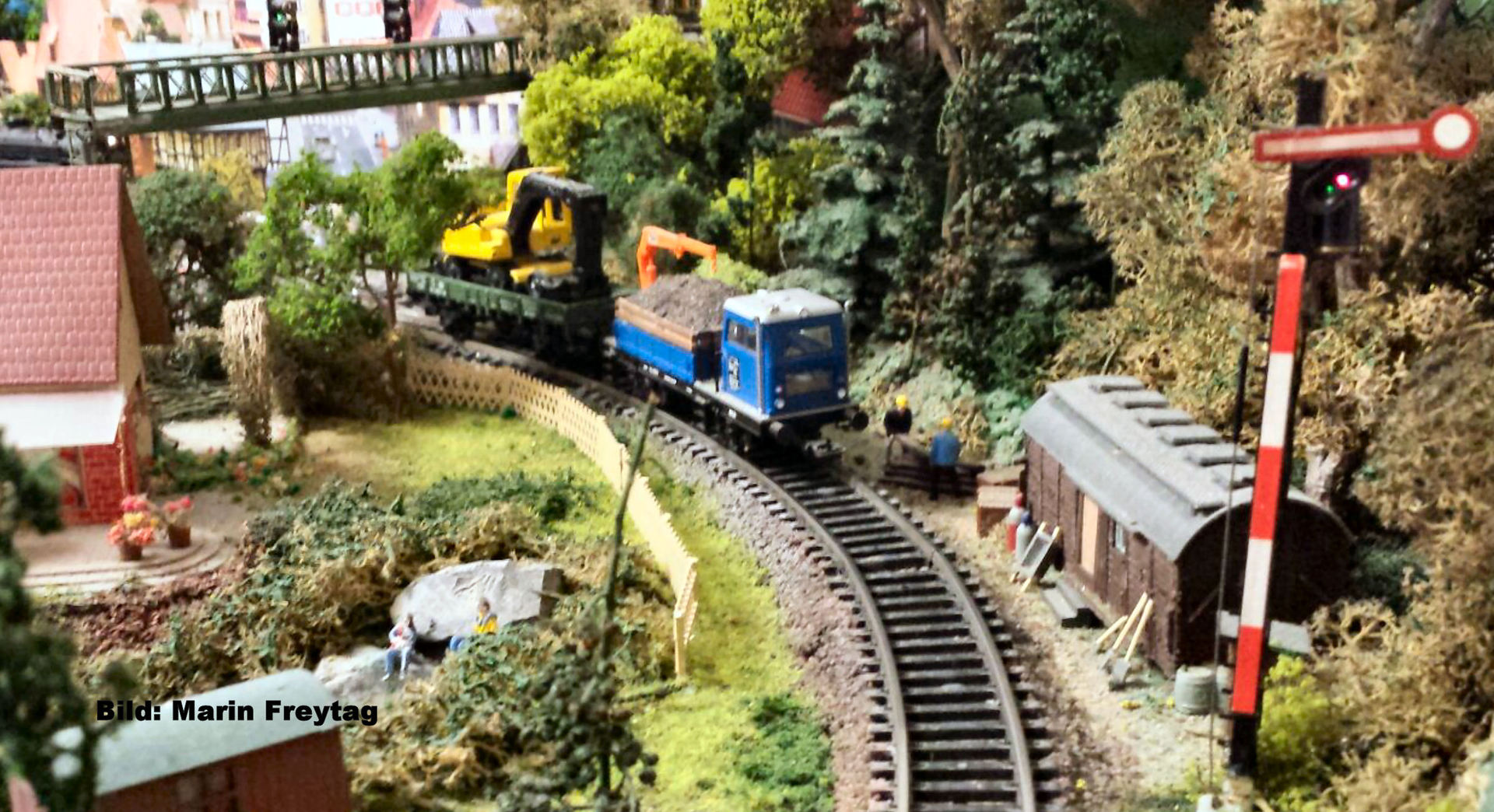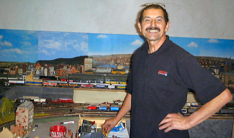 Willi S. baut schon viele Jahre an seiner Anlage. Ursprünglich war es eine kleine Spielbahn für den Sohn. Im Lauf der Zeit wuchs sie zu einer stattlichen Ausstellungsanlage von 12m x 2m Größe an, die mit vielen liebevoll gestalten Details gefüllt ist. Willi S. zeigte seine Anlage schon bei vielen Ausstellungen.