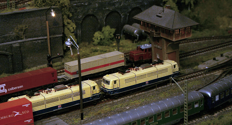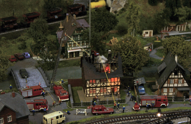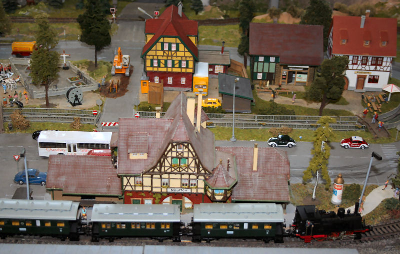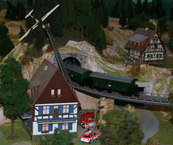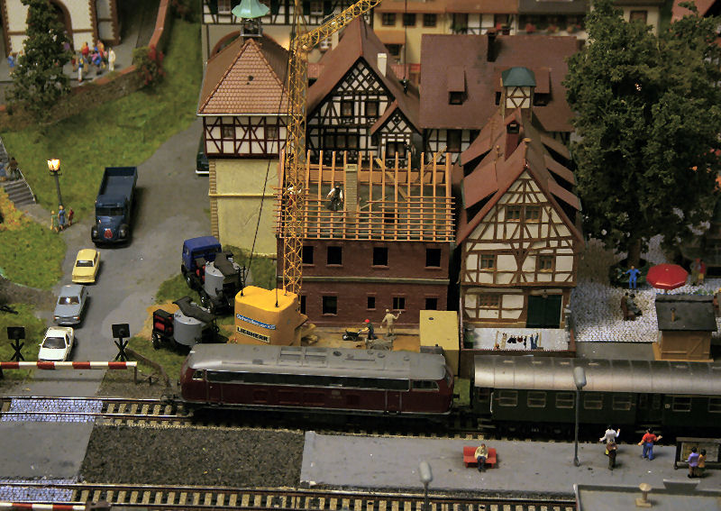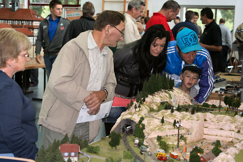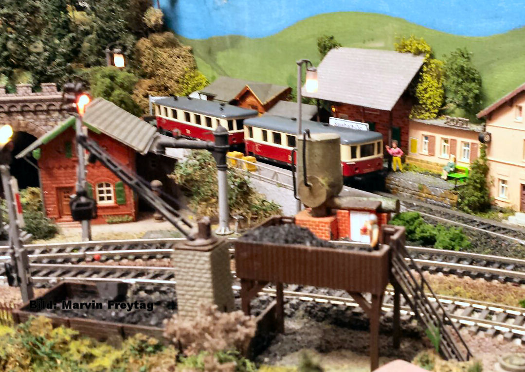 Willi S. baut schon viele Jahre an seiner Anlage. Ursprünglich war es eine kleine Spielbahn für den Sohn. Im Lauf der Zeit wuchs sie zu einer stattlichen Ausstellungsanlage von 12m x 2m Größe an, die mit vielen liebevoll gestalten Details gefüllt ist. Willi S. zeigte seine Anlage schon bei vielen Ausstellungen.